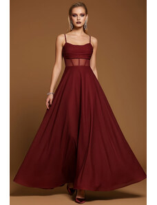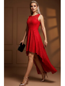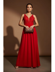 Parizianista maxi φόρεμα μουσελίνα με δαντέλα στο ντεκολτέ - Κόκκινο - 010014