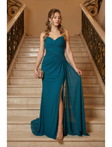 Parizianista Μάξι Φόρεμα Μουσελίνα με Draping & Ενίσχυση Στήθους - Πετρόλ - 037014