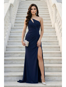 Parizianista Maxi One Shoulder Φόρεμα με Σκίσιμο & Draping – Elegant Evening Dress - Μπλε σκούρο - 023014