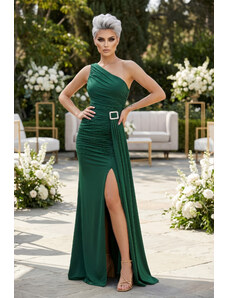 Parizianista Maxi One Shoulder Φόρεμα με Σκίσιμο & Draping – Elegant Evening Dress - Κυπαρισσί - 056014