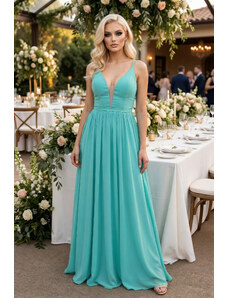 Parizianista Γυναικείο Maxi Φόρεμα Σιφόν Με Τιράντες Και Βαθύ V Μπούστο - Βεραμάν - 060014