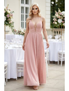 Parizianista Γυναικείο Maxi Φόρεμα Σιφόν Με Τιράντες Και Βαθύ V Μπούστο - Ροζ - 018014
