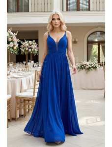Parizianista Γυναικείο Maxi Φόρεμα Σιφόν Με Τιράντες Και Βαθύ V Μπούστο - Μπλε - 025014
