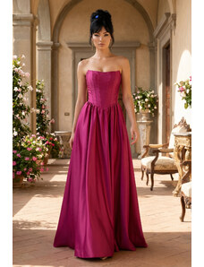 Parizianista Maxi Strapless Φόρεμα με Corset Μπούστο – Princess Satin Dress - Ματζέντα - 074014