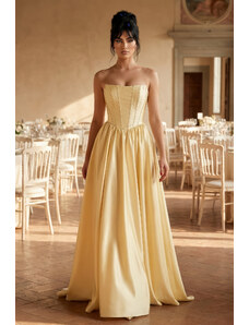 Parizianista Maxi Strapless Φόρεμα με Corset Μπούστο – Princess Satin Dress - Κίτρινο - 008014