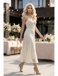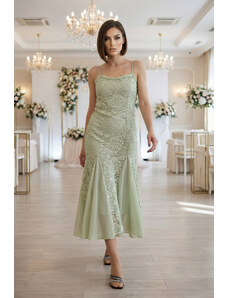 Parizianista Γυναικείο Φόρεμα Midi Με Δαντέλα & Σιφόν Λεπτομέρειες - Φυστικί - 061001
