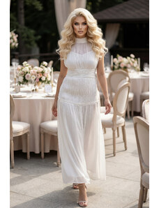 Parizianista Γυναικείο Φόρεμα Maxi Ημίζιβαγκο Με Σούρες & Άνοιγμα Πλάτης - Λευκό - 009001