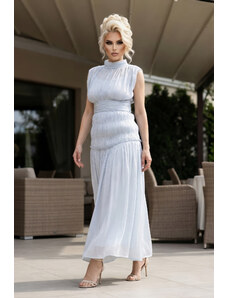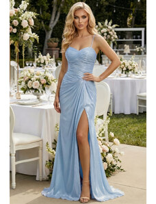 Parizianista Maxi Φόρεμα με Draped Σχέδιο, Σκίσιμο & Ανοιχτή Πλάτη – Elegant Φόρεμα - Σιέλ - 079014