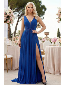 Parizianista Maxi Αέρινο Φόρεμα με Σχέδιο Στρας στη μέση & Σκίσιμο – Elegant Βραδινό Φόρεμα - Μπλε ηλεκτρίκ - 015014