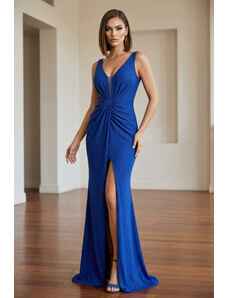 Parizianista Maxi Evening Φόρεμα με Draped Σχέδιο & Σκίσιμο – Royal Blue - Μπλε ηλεκτρίκ - 015014