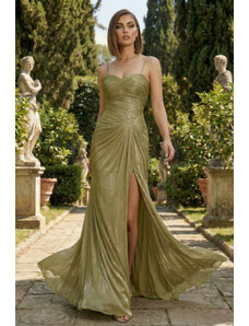 Parizianista Maxi Strapless Φόρεμα με Corset Μπούστο, Στρας & Σκίσιμο – Satin Effect - Χακί - 019014