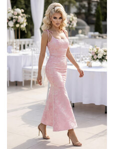 Parizianista Γυναικείο Φόρεμα Maxi Γοργονέ Με Δετές Τιράντες - Ροζ - 018014