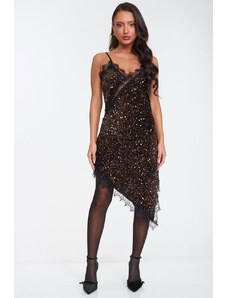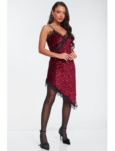 DeCoro Φόρεμα Mini με Εναν Ωμο και Παγιέτες - ΦΟΥΞ