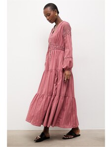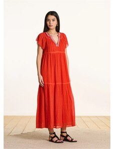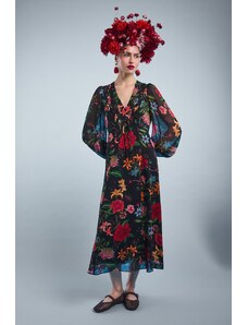La Fee Maraboutee Γυναικείο Φόρεμα Maxi Regular Fit Με Graphic Print Βολάν Και Κεντημένη Tunisian Λαιμόκοψη