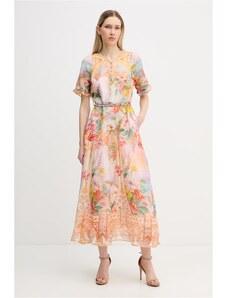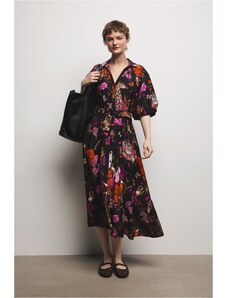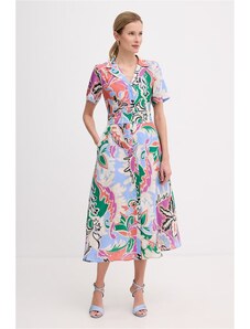 Vilagallo Γυναικείο Φόρεμα Brenda Ikat Palm Print Three Quarter Sleeve Regular Fit