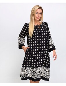 Luisa Viola Γυναικείο Φόρεμα Regular Fit Viscose Με Σχέδιο Ρόμβων Και Λουλουδιών Μαύρο