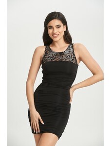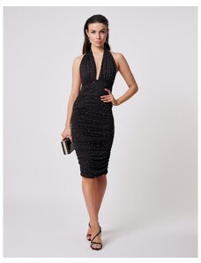 FOREVER UNIQUE Μαύρο Μίντι Φόρεμα Με Ντραπαρίσματα ΜΑΥΡΟ