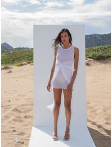 Nika Ioannidou | Τούλινο φόρεμα με πιάσιμο και σούρες Λευκό
