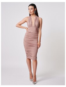 FOREVER UNIQUE Μπεζ Μίντι Φόρεμα Με Ντραπαρίσματα ΜΠΕΖ
