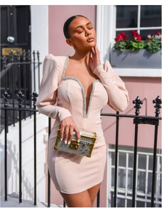FOREVER UNIQUE Nude Μίνι Φόρεμα Με Στράς NUDE