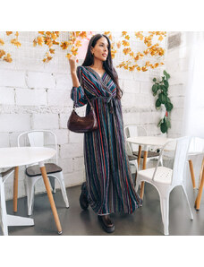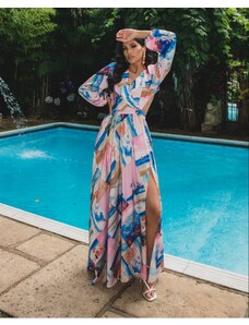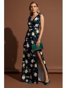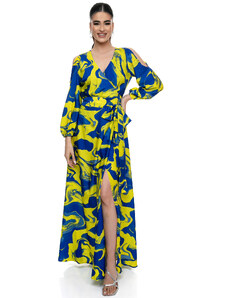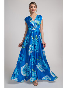FIBES Floral μακρύ κρουαζέ φόρεμα 05-9059-BLUEL, Χρώμα Πολύχρωμο, Μέγεθος 48