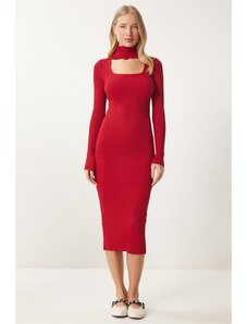 KARL LAGERFELD JEANS Πλεκτό φόρεμα έντονο κόκκινο / μαύρο / λευκό