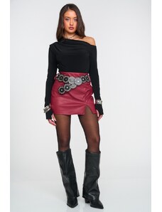 FUNKY BUDDHA Midi φούστα με πιέτες από οικολογικό δέρμα (PU)