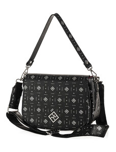 Γυναικεία Τσάντα Χιαστί Pierro Accessories Clio Monogram με Καπάκι σε Χρώμα Μαύρο 90829PM01
