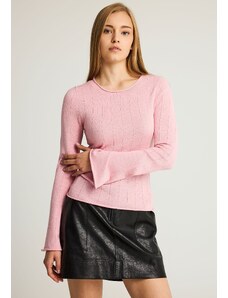 FUNKY BUDDHA Γυναικεία πλεκτή μονόχρωμη μπλούζα με pattern ρίγας