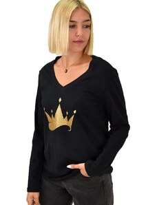 Potre Μακρυμάνικη βαμβακερή μπλούζα με τύπωμα κορώνα