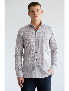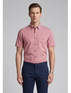 Prince Oliver Πουκάμισο Κόκκινο με Μικροσχέδιο in Cotton (Modern Fit)