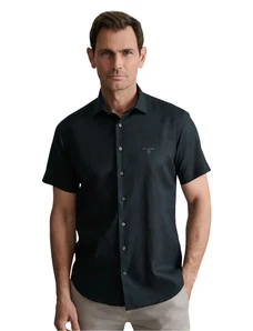 Navy & Green Ανδρικό Πουκάμισο Λινό 24NG.B411/NGM/SS MIDNIGHT BLACK Μαύρο