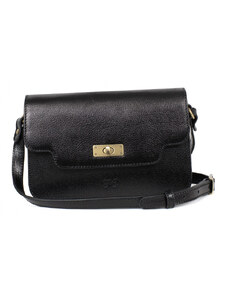 HEXAGONA Τσάντα τριθέσια χιαστί 22,5x7x14,5 με καπάκι σε μαύρο δέρμα R8DUKMU - 26573-01