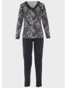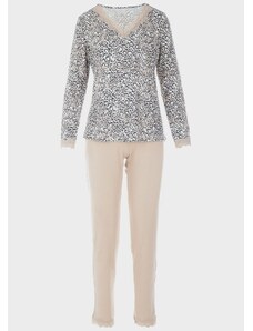 Gsecret Γυναικεία πυτζάμα με V διακοσμητική δαντέλα animal print. Homewear Collection. ΚΑΜΕΛ
