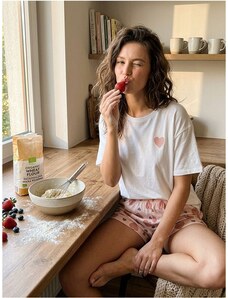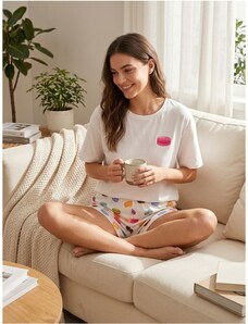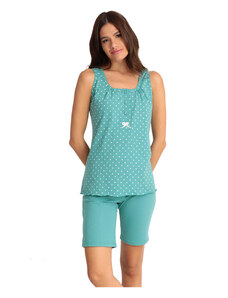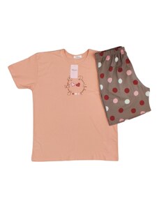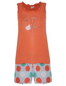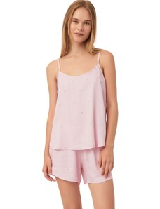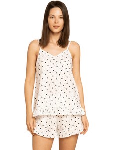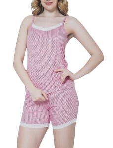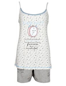 Vienetta Γυναικεία Πυτζάμα με τύπωμα "Hello World" λεπτή τιράντα και σορτσάκι-2042