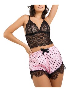 La Lolita Amsterdam ALEXA Σατέν υφής πουά babydoll σετ 3 τμχ με τιραντάκι, σορτσάκι & ασορτί λαστιχάκι μαλλιών