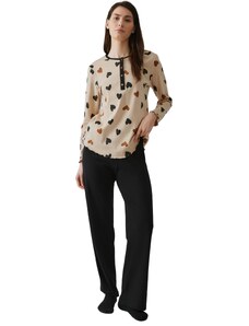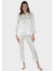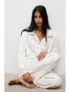 Gsecret Γυναικεία σατέν πιτζάμα all print flowers παντελόνι με λάστιχο στη μέση. ΕΚΡΟΥ