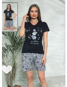 FashionWoman Γυναικεία Πιτζάμα Μαύρο Κοντομάνικο με Γκρι Σορτς Σχέδιο Sweet Dreams
