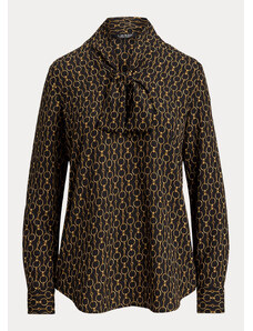 Γυναικείο Πουκάμισο Κρεπ με Στάμπα Αλυσίδας και Δετό Λαιμό Μαύρο Polo Ralph Lauren 200979913001