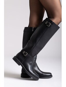Ideal shoes Flat Boots with Side Buckle - 6368 - Black Matte