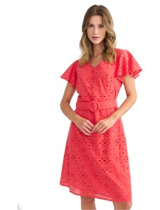 FIBES Κοραλί μίντι φόρεμα με διάτρητο σχέδιο 05-9075 CORAL, Χρώμα Κόκκινο, Μέγεθος 48