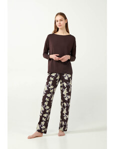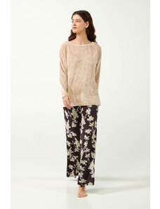 Pink Label Χειμερινό Γυναικείο Σετ Πιτζάμας Βαμβακερό Hazelnut W1791-Type