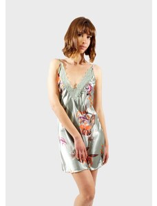 Gsecret Γυναικείο νυχτικό saten all print floral λεπτομέρειες δαντέλας ΧΑΚΙ