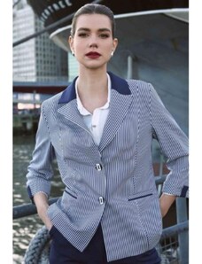 FIBES Γυναικείο μπλέ σακάκι ριγέ με πέτο γιακά 01-6006-BLUE, Χρώμα Μπλε Σκούρο, Μέγεθος 48