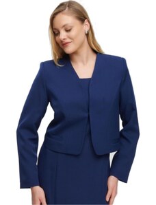 FIBES Γυναικείο μπλέ σακάκι κοντό χωρίς πέτο 01-6012N-BLUE, Χρώμα Μπλε Σκούρο, Μέγεθος 54