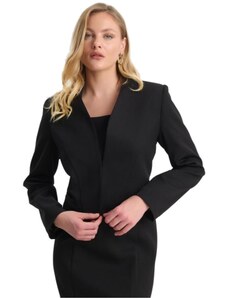FIBES Γυναικείο μαύρο κρεπ σακάκι 01-5828N Black, Χρώμα Μαύρο, Μέγεθος 48