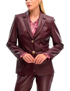 FIBES Γυναικείο μπορντό σακάκι δερματίνη 01-6107-BORDO, Χρώμα Κόκκινο, Μέγεθος 48