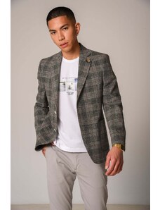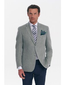 Hd X Vardas Ανδρικό Σακάκι Slim Fit Από Μείγμα Wool, Μετάξι Και Λινό Πράσινο Καρό