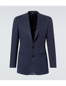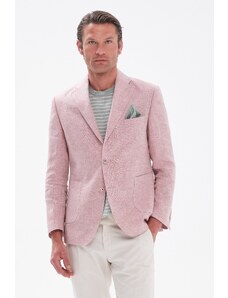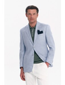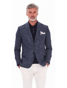 Prince Oliver Σακάκι Μπλε Ραφ με Μικροσχέδιο in Linen (Modern Fit)