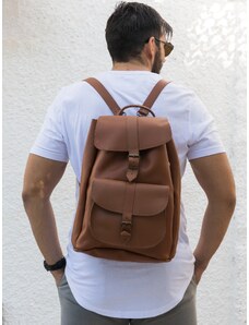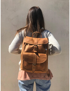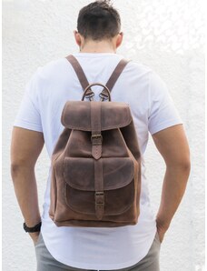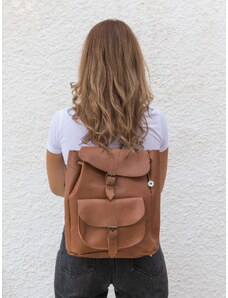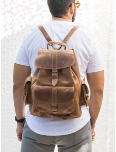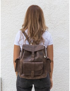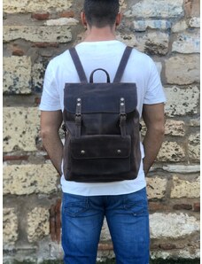 Χειροποίητο Καφέ Δερμάτινο Σακίδιο Πλάτης Με Μεγάλη Τσέπη – Large Μέγεθος | Christina Christi